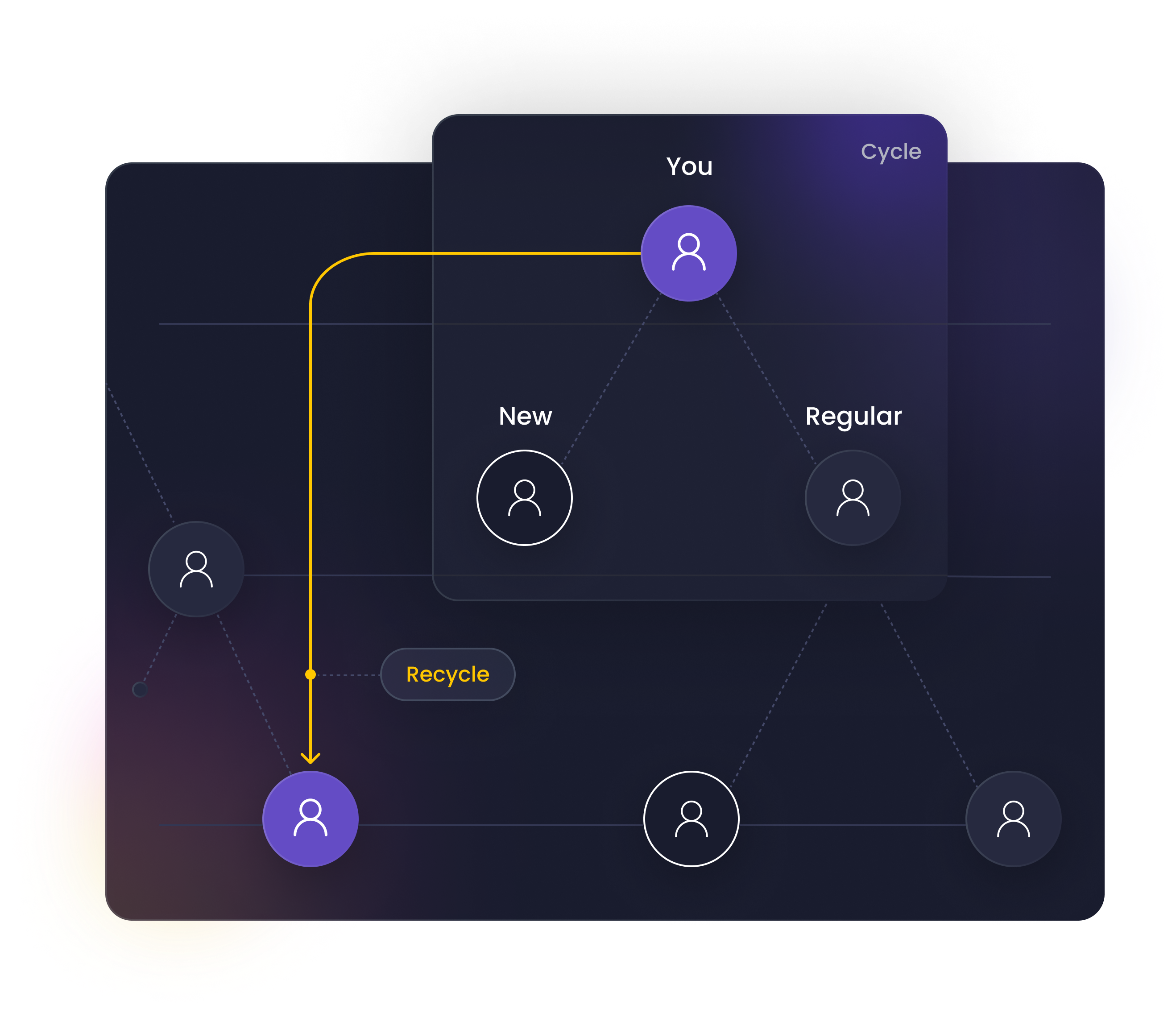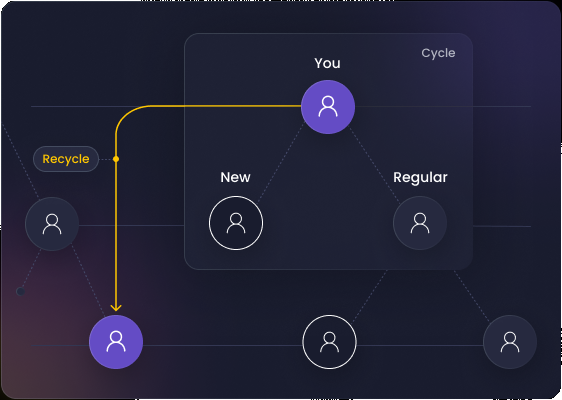 2. When a new player appears under you in the cycle, you get a profit in the same ratio;
